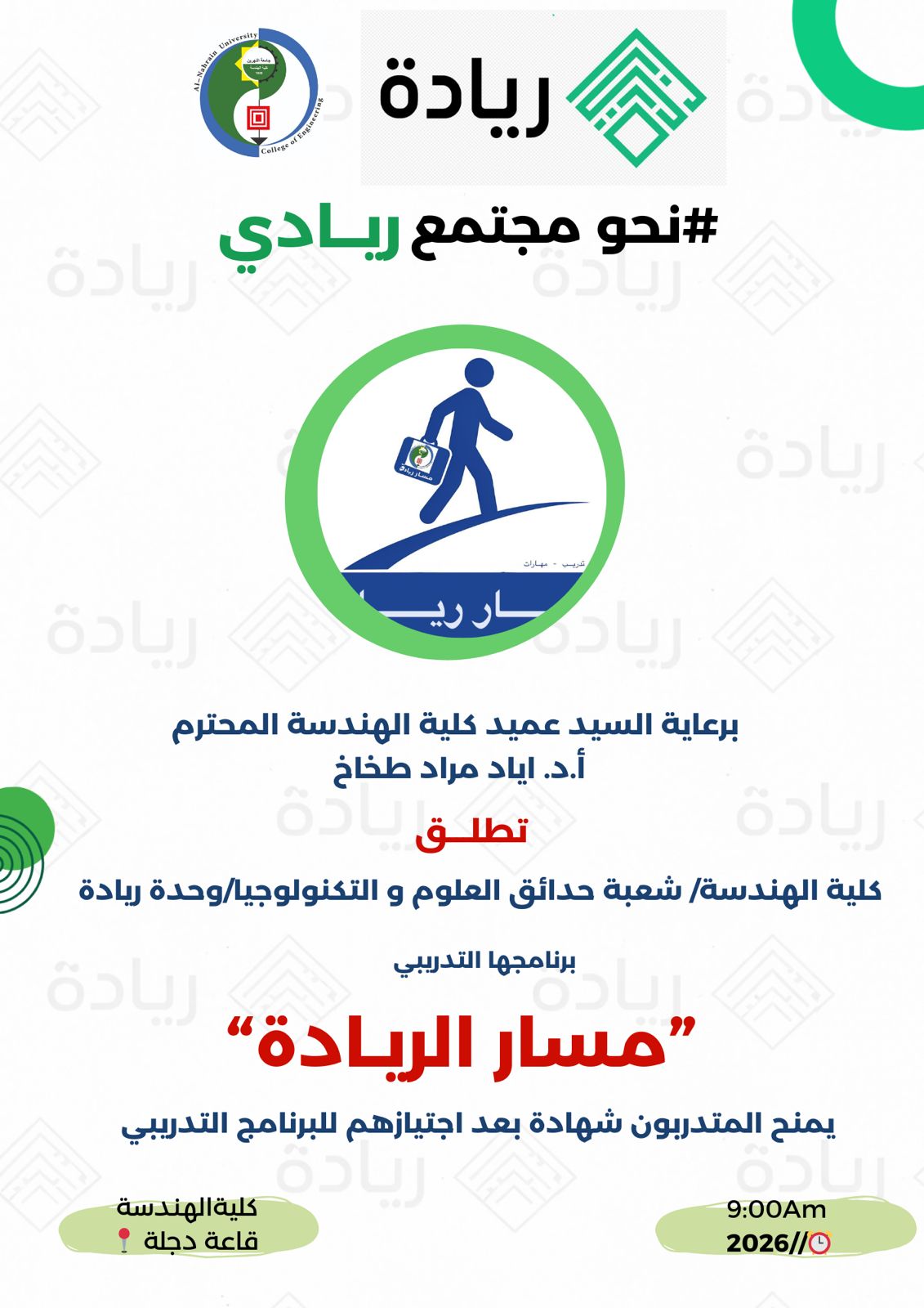 برعاية عميد كلية الهندسة / جامعة النهرين الأستاذ الدكتور إياد مراد طخاخ، وبإشراف رئيس قسم الهندسة الإلكترونية والاتصالات الدكتور علي عب.....