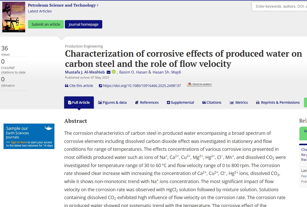 حسن، والباحث مصطفى جعفر المشلب، من قسم الهندسة الكيمياوية بحثًا مشتركًا جديدًا